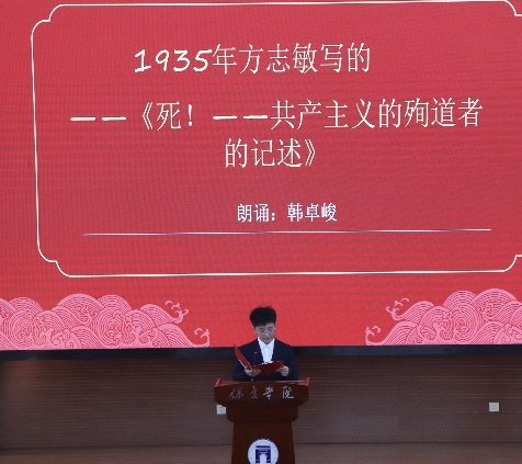 本次大赛共有15名选手围绕党史故事进行了精彩的演讲。同学们选择的党史内容包括:慷慨赴刑场的无产阶级革命家——方志敏的故事;在中国革命生死攸关的时刻召开遵义会议的过程;中国共产党第一位女中央委员——向警予的故事;在诗词中彰显周恩来同志一心为民的情怀;长津湖边冰雕连的英雄壮举;邓恩铭宁死不屈、浩气长存的革命气概;在红色峥嵘岁月中形成的延安精神;“白山黑水之间的钢铁战士”,民族脊梁——杨靖宇的故事;豪气冲天的热血男儿——夏明翰的故事;铮铮铁骨、戎马一生的叶挺将军的故事。同学们用真情实感诵读了百年党史中的经典故事,用朗读的形式讲好中国共产党革命故事,并从中汲取了新时代不忘初心砥砺前行的力量。