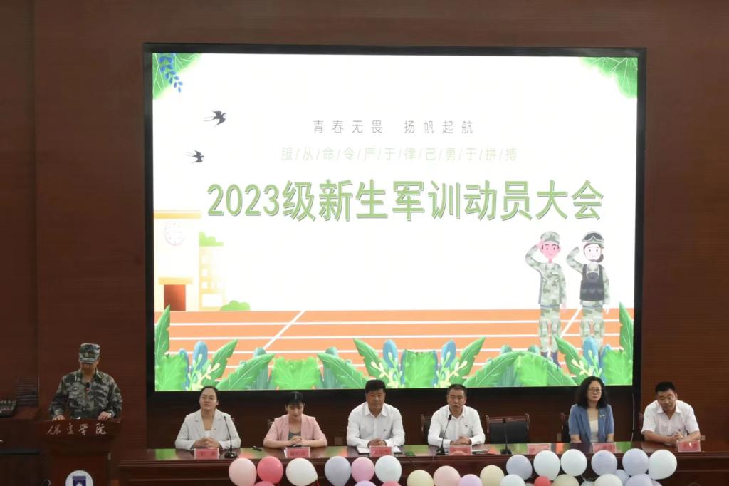 2023年9月10上午9:30,beat365中国官网在昌绪学术厅召开2023级新生见面会暨军训动员大会。公司党总支书记吴二斌、经理崔福林、副书记吴宗宅,副经理张静茹、教研室主任康许培、辅导员叶涛、王晨,军训教官、团总支员工会成员、全体2023级新生参会。