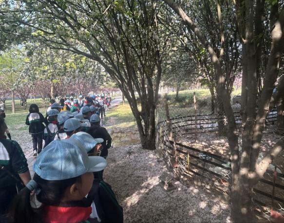 归途间,青年志愿者分会的志愿者们为研学团师生讲述了西部支教毕业生群体的故事,西部支教精神伴着花香浸润童心。