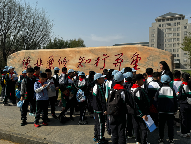 随后,师生团驻足镌刻着岁月痕迹的老校门,历史长卷在童眸中徐徐展开;校训石前,师昌绪先生的治学故事传递着教育哲思和精神追求。