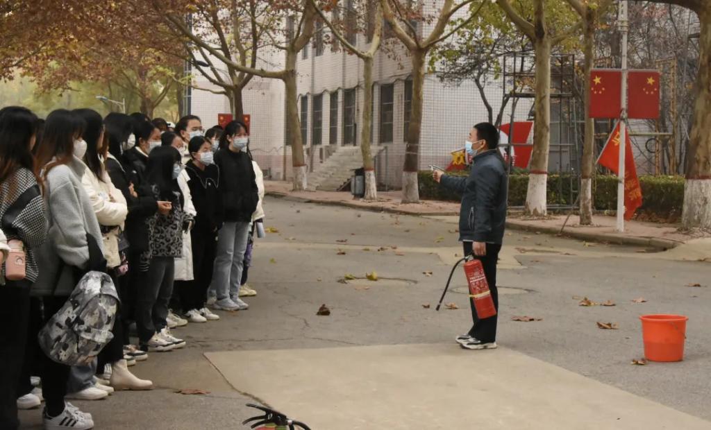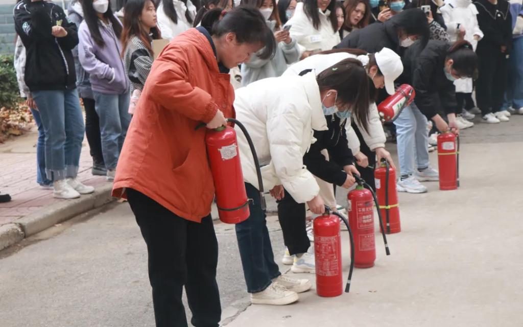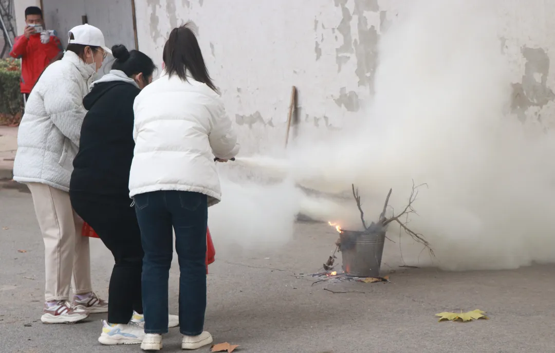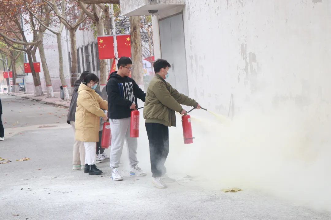 同学们还学习了灭火器使用方法,并使用灭火器开展防火演习。