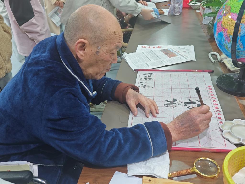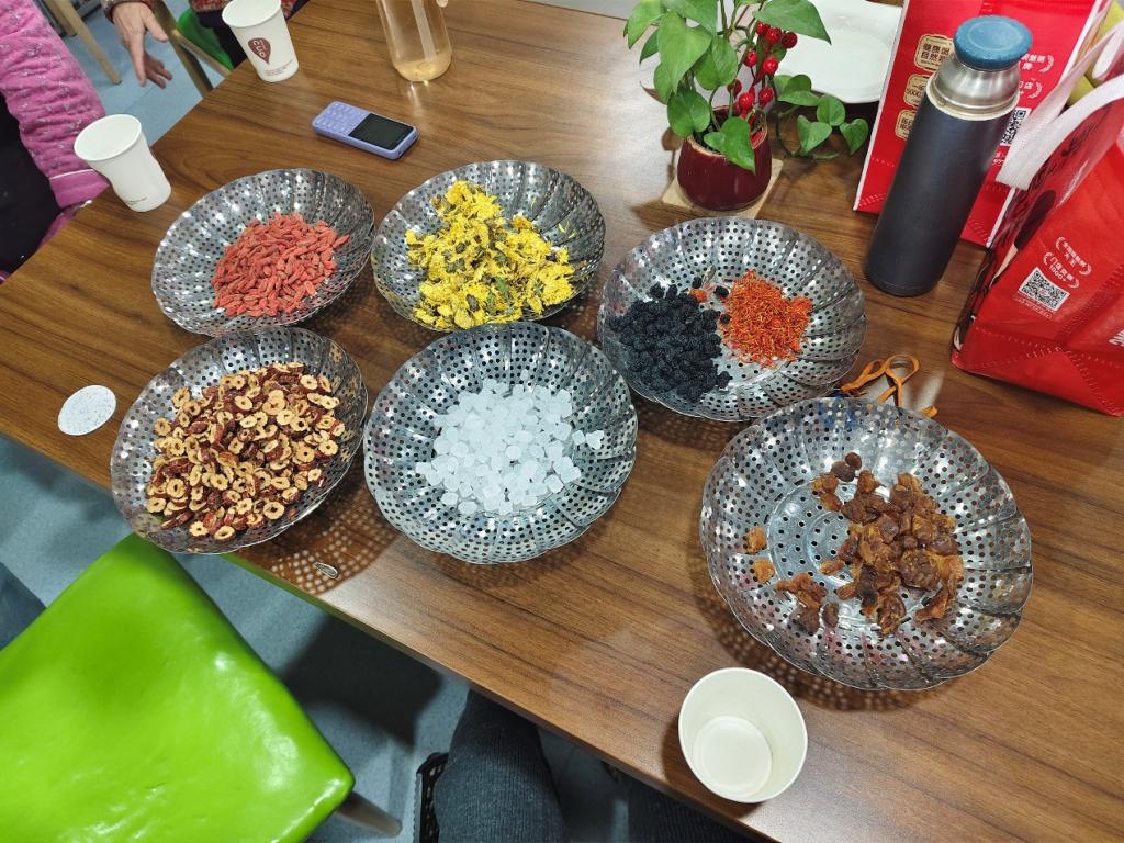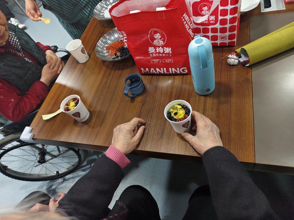 午后,15名志愿者走进民族敬老院,通过“读报传情”“茶韵沁心”“巧手共创”三大环节,为老人们送去春日温情。志愿者分组给老人读报、分享养生知识,并同老人们一起手工DIY菊花枸杞茶、茉莉红枣茶等养生茶品,还共同制作扭扭棒花朵、动物等手工艺品。97岁的奶奶举着扭扭棒向日葵笑道:“这些孩子手巧又贴心,茶香混着笑声,日子都亮堂了!” 在茶香氤氲与笑语晏晏中志愿者们以青春热忱浸润银发岁月。